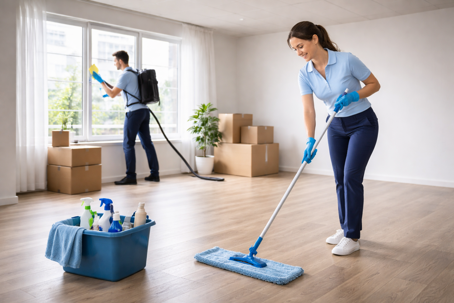 Når du flytter ud eller ind, sørger vi for en total rengøring fra top til bund. Vi gør køkken, badeværelse, vinduer og gulve klar, så alt står pænt og indbydende.